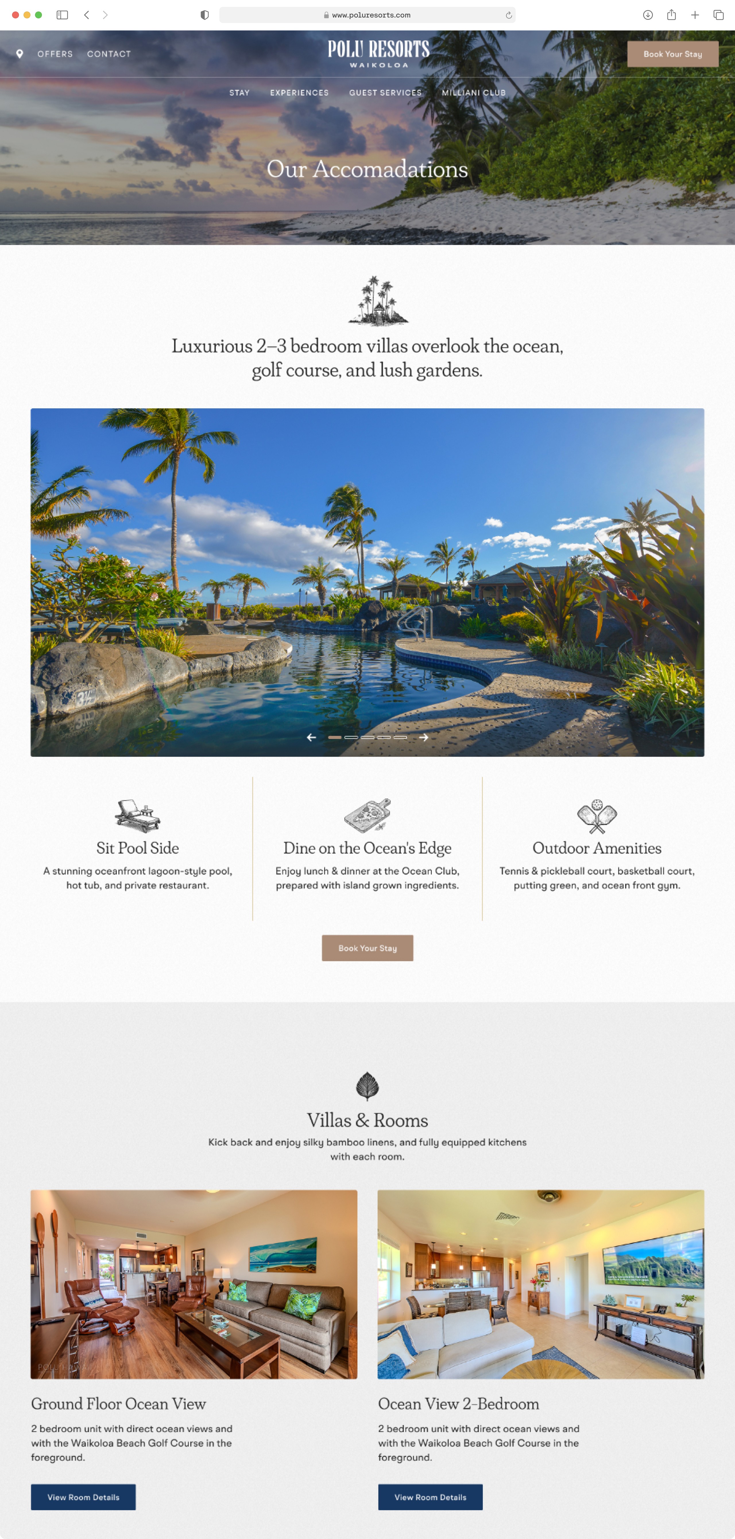 Rooted in the harmony between land and sea, Polu Resorts reimagines island hospitality through refined design — creating a visual identity that mirrors the calm, contemporary spirit of Hawai'i.